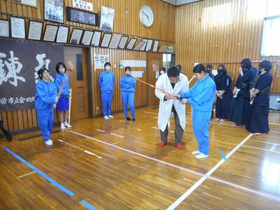 剣道場に行ってみると1年生がたくさん見学に来ていました。竹刀をもってみたり振ってみたり興味がわきますね!
