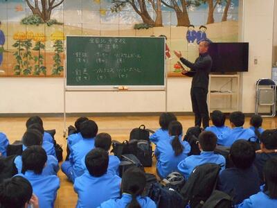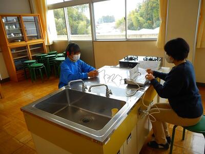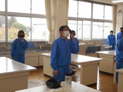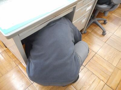 2時間目に避難訓練を行いました。今日は「地震⇒給食室から出火」の設定で訓練をしました。地震が起きて机の下に隠れ頭を守ります、職員室でも実践!青木先生も訓練中です。
