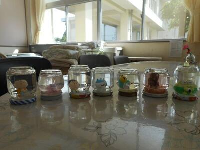 「保健委員会では、ストレス解消を目指し、癒やしのアイテムとしてスノードームを作りました。各学年のトイレの水道に設置しますので、大切に扱って癒やされてください。」と全校生徒に伝えていました。