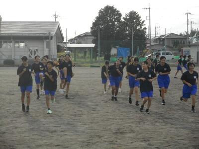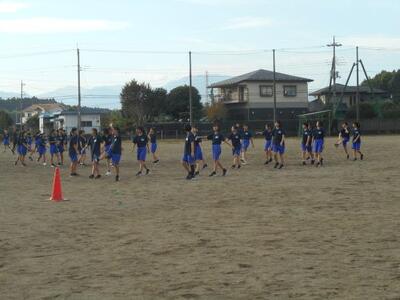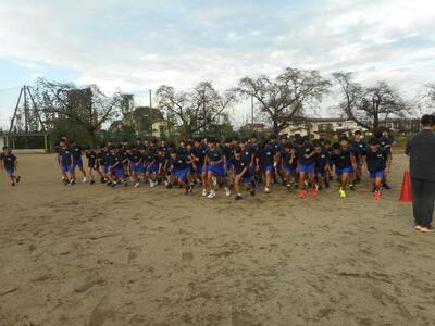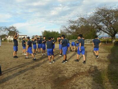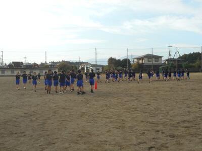 今日はタイムトライアルがありました。まずはクラスごとに準備運動です。なんだかみんな楽しそうですね!笑顔で取り組めるのが北中生のいいところです。