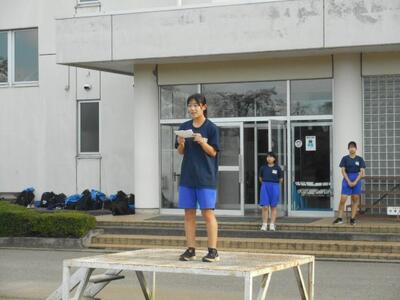 駅伝部長の相馬さんから全校生徒に市内駅伝の結果報告とお礼のあいさつがありました。これからも応援しますよ~!