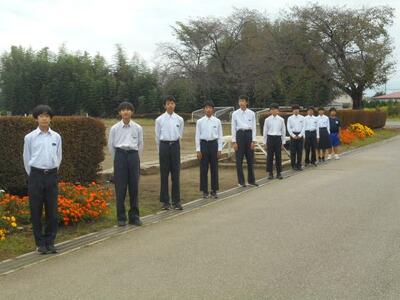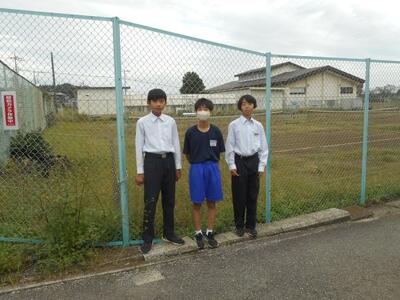 あいさつ運動はサッカー部のみなさんです。今朝は3か所に分かれてあいさつをしていました。ペットボトル当番の仕事が終わった生徒も合流です。