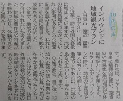 今朝の下野新聞の読者投稿10代の声に3年生の渡邊星絆さんの作文が載っていました。嬉しいですね。おめでとう!