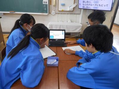 話し合ったことをグループ以外の人と共有し、さらに話し合います。