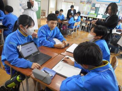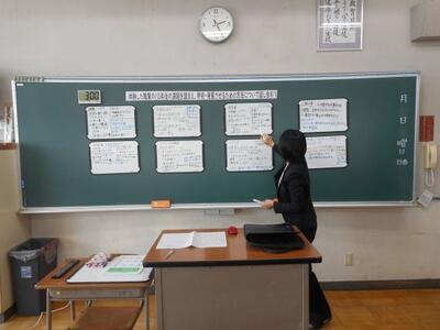 5時間目は総合的な学習の時間の研究授業でした。めあては「体験してきた職業の10年後の課題を踏まえ、持続可能性について話し合うことができる」です。
