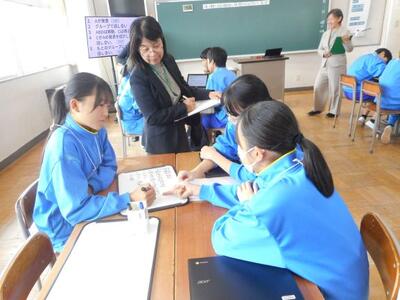 生徒たちはよく発表し、話し合い、考えを深めていました。とても素晴らしい授業でした。授業者の瓦葺先生、田母神先生、藤田先生、ありがとうございました。