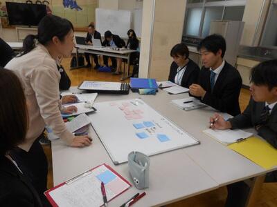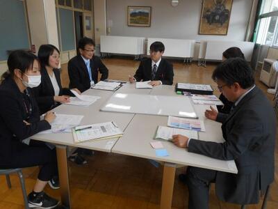 放課後は授業研究会を開き、先生方で勉強会です。市野沢小学校と羽田小学校の先生方も一緒によりよい授業づくりに向けて話し合います。