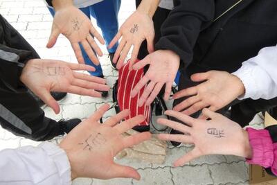 女子は、手のひらに「県」と書いてこの大会に臨んでいました!(汗で消えてしまった生徒もいますが……)目標達成、おめでとう!!