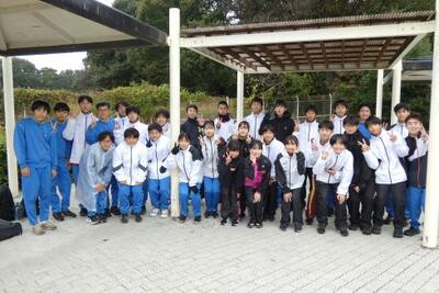 みんなで記念写真を撮りました。雨の中応援に来てくれたサッカー部の皆さんも一緒です。サッカー部の皆さん、熱い応援をありがとう!