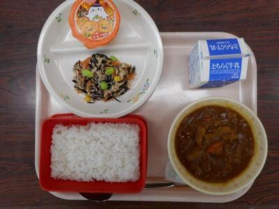 今日の給食 投稿: 金田北中 (13:06) 今日の給食は「ごはん・牛乳・ポークカレー・ひじきのサラダ・パンプキンババロア」です。 北翔祭の終了が遅れ、ちょっと忙しい給食の時間になりましたが、カレーでみんな完食です! 今日はハロウインでしたね。パンプキンババロアが甘くて美味しかったです。 調理員さん、今日も美味しい給食をありがとうございます。片付けが遅くなってしまってごめんなさい。ごちそうさまでした。 Tweet -