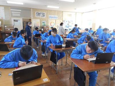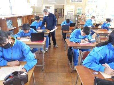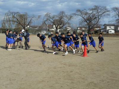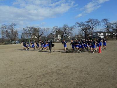 ・2年2組は体育です。今日は生徒たちからのリクエストで校内マラソン大会の試走です。まずは女子がスタート、女子がゴールすると次に男子がスタートです。「がんばれ~」「ファイト!」こちらも声援があちらこちらから聞こえてきます。