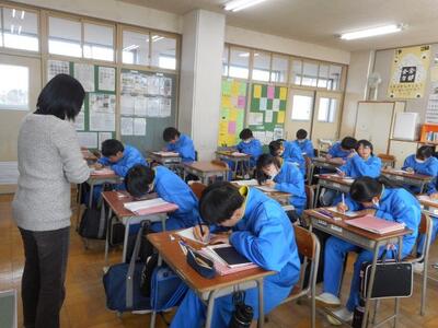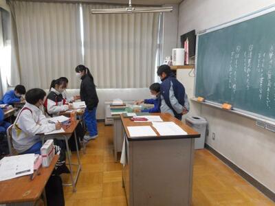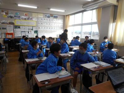 ・2年2組は国語です。年賀状の書き方を学習し、下書きを完成させています。5時間目1組で「元旦」の意味を確認していました。「元日」の「旦・・・地(水)平線から日が昇る様子」なので、1月1日の朝のことですね!