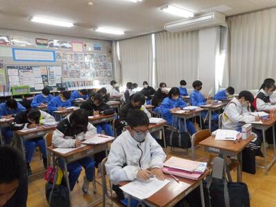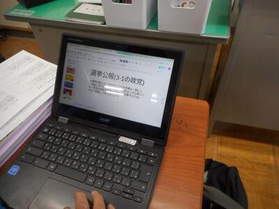 ・3年2組は社会です。選挙公報が完成しました。それ視聴しています。あさっての授業公開で1組・2組とも演説本番を迎えるそうです。今日はあまり詳しく載せません。あさってぜひ参観してください。