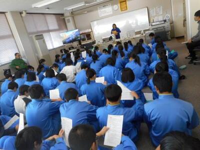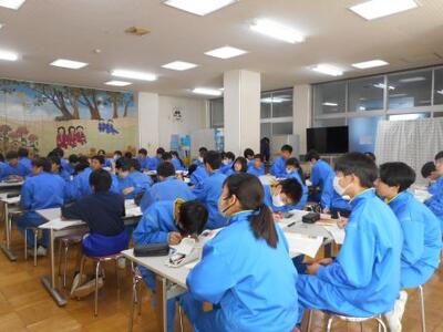 主人公のいらだちが最初は理解できない生徒もいましたが、田母神先生の実体験を交えた話や、友達との話し合いを通して、自分事として捉えることができたようです。最後には、これから家族とどう接していくか、一人一人が考えてワークシートに書き込んでいました。