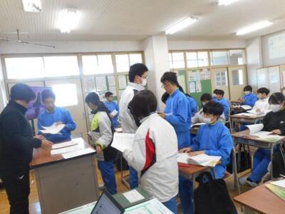 説明が終わったら教室に戻り、12月5日に行った確認テストを返されるそうです。できなかったところは、冬休み中にしっかり復習しておきましょう!