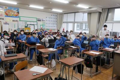 3年2組は、青木学年主任の道徳です。テーマは「5つの誓い」。主人公はスキーの事故で首の骨を折ってしまいますが、周囲の助けを借りて奇跡的な回復を見せます。