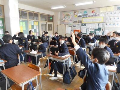 ・2時間目、3年1組は社会です。消費生活を支える流通について学習しています。ちょうど「POSシステム」の話になっていました。コンビニでバーコードをピッとすると、様々な情報が記録されるシステムです。便利な世の中ですね~