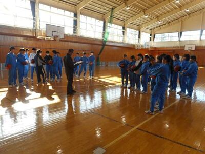 ・2時間目、3年1組は体育です。バスケットボールをやっています。まずはシュートの練習、これから男女それぞれ3チームに分けて試合が始まるそうですよ。