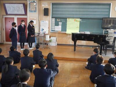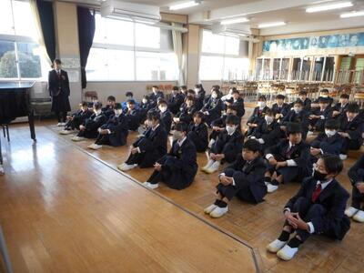 今朝は学年集会がありました。1年生は音楽室で、学年委員から1月の学年目標が伝えられました。話を聞く姿勢がいいですね!1年生もあと2か月ちょっとで先輩です。
