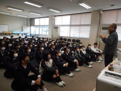 3年生はコンピュータ室です。青木学年主任から受験期の生活等について話がありました。私立高校の受験が終わり、2月始めに県立高校特色選抜があります。体調整えて目標に向かってがんばってください。応援しています。