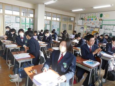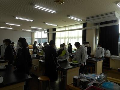 ・2年1組は理科です。久しぶりの理科室での授業です。ある工事のためにしばらく理科室が使えませんでした。みなさん、写真を見て何かお気づきですか?