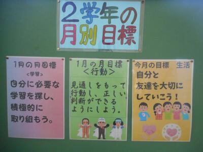 2時間目 2年生 投稿: 金田北中 (10:20) ・1組は理科です。電流の学習をしています。回路を作って電流の値を求めています。ICTを活用していてすごいですね~ ・2組は国語です。意味が通る短文を作ろうです。確かによく聞く言葉ですが、実際に文を作るとするとなかなか難しいようです。 2年生の月別目標です。30日に立志式を向かえる2年生。学習・行動・生活、それぞれの目標を意識して生活してくださいね! Tweet -