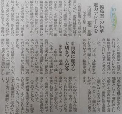 今朝の下野新聞の読者投稿10代の声に2年生の髙橋星輝さんの作文が載っていました。嬉しいです。