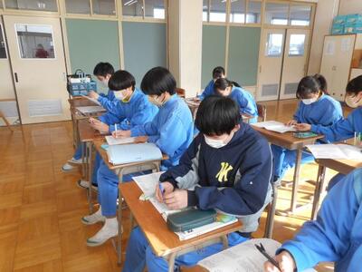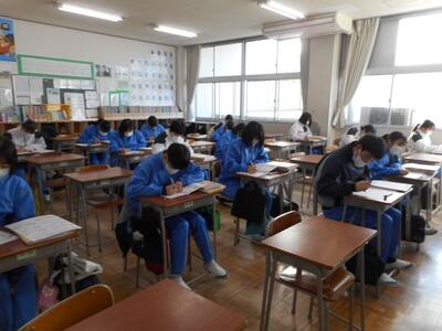 ・1組は国語です。入試対策のプリント学習です。3年生、卒業まであと登校20日ですか!