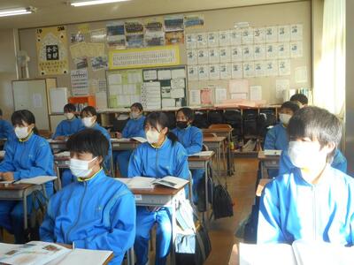 1年生は、普段は食堂で学年道徳を行っていますが、密を避けるため今日は各クラスでの授業です。
