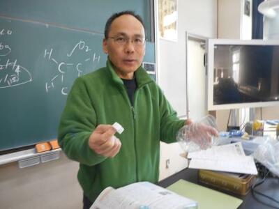 ポリプロピレン(PP)とポリエチレンテレフタラート(PET)の燃え方の違いを確認する実験だったそうですよ。「燃え方だけでなく、浮くか沈むかも違う」と青木先生から解説がありました。