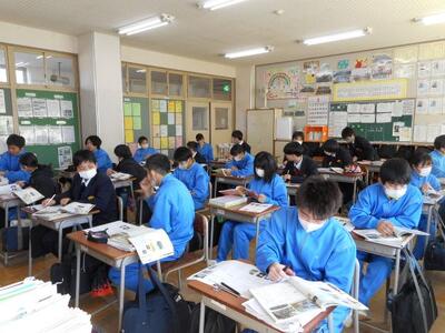 ・2年2組は国語です。リンクマップ作成2時間目です。2年生は話し合いもまとめるのも上手です!割り当てられたテーマは「休日は一人一人が決めるべき」「給食は廃止するべき」「日本人は英語を母国語とするべき」「中学生は全員制服を着るべき」「義務教育を高校まで延長するべき」「優先席を廃止するべき」・・・など、ん~中学生の意見はどうなのかな~?発表会が楽しみです。