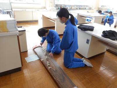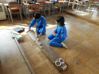 ・1年2組は音楽です。箏で「さくらさくら」を演奏しています。みんな上手ですよ~!
