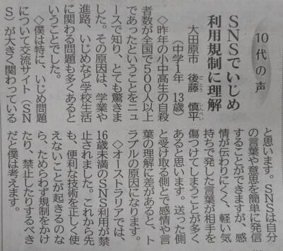 おはようございます。 投稿: 金田北中 (08:42) おはようございます。今朝はきれいな青空が広がり気持ちの良い天気になりました。 今朝の下野新聞の読者投稿10代の声に1年生の後藤慎平さんの作文が載っています。嬉しいです。 今日は卒業式予行、3年生修了式・同窓会入会式が行われます。 Tweet -