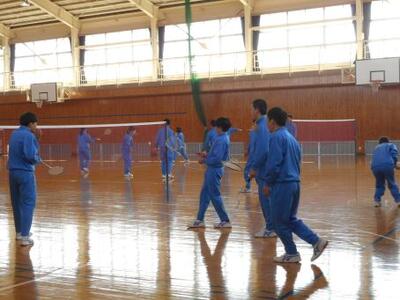 2年2組は体育。バドミントンの授業です。みんな楽しそうに体を動かしています。